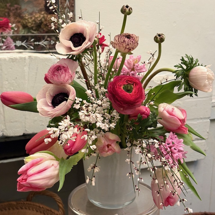 Size Reference: The “It’s the Thought” size might include 10 tulips, 5 ranunculus or hyacinth, a few springs of genesta or eucalyptus, and 2 french tulips/clooney ranunculus